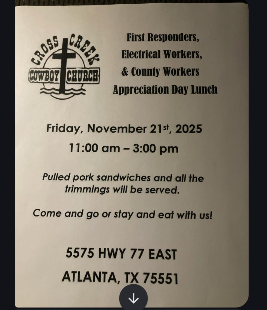 5th Saturday ( when it happens ) – Centerhill Baptist Church ( 4677 FM 1841 – Linden )