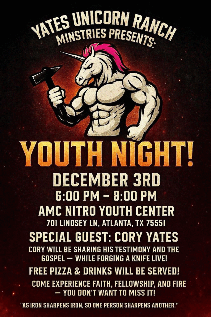 Men’s Bible Study – Cornerstone AG Open to all men who want to dive deep into a study with open discussion 6:30 pm | Monday | 105 W Main St | Atlanta, TX