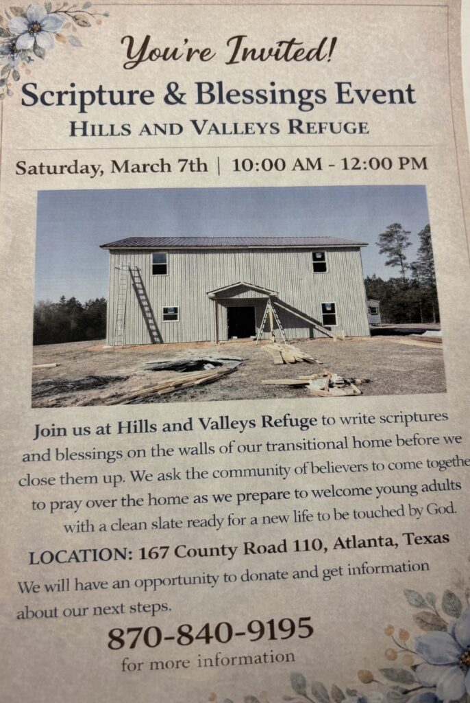 6:00 pm | Friday, February 20th | 1100 CR 4676 | Atlanta, TX